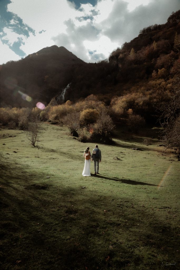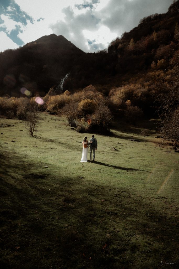 Le mariage à Oô de ce couple restera gravé dans les mémoires. Si le jour J a été marqué par une météo capricieuse, cela n’a fait que renforcer l’envie des mariés d’immortaliser leur amour dans un cadre à la hauteur de leur union. Quelques jours plus tard, c’est dans le décor enchanteur des Granges d’Astau que nous avons réalisé une séance photo inoubliable, malgré un marié légèrement enrhumé !